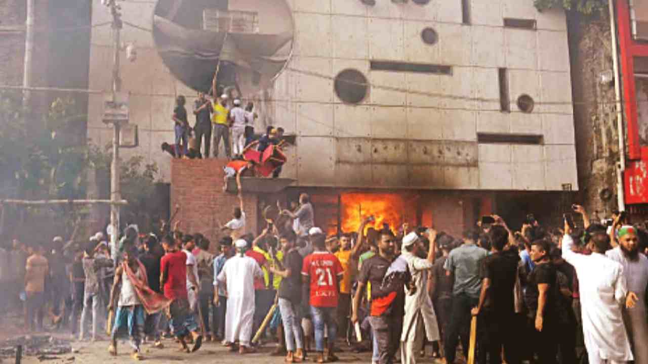 সামাজিক যোগাযোগমাধ্যমে ছড়িয়ে পড়া ভিডিওতে দেখা গেছে, বিক্ষুব্ধ জনতা জড়ো হয়ে সেখানে অবস্থান কর্মসূচি পালন করছেন। অনেককে আবার কার্যালয়ের দেয়ালে থাকা শেখ মুজিবুর রহমানের খোদাই করা গ্রাফিতি ভাঙতে দেখা গেছে।।