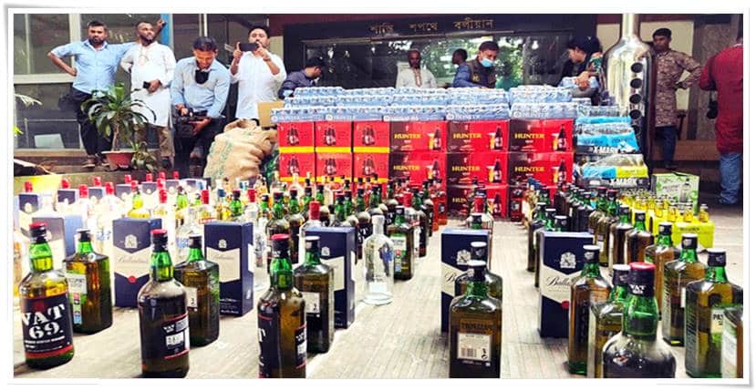 উত্তরায় অবৈধ কিং ফিশার বারে অভিযান, বিপুল পরিমাণ মদ জব্দ