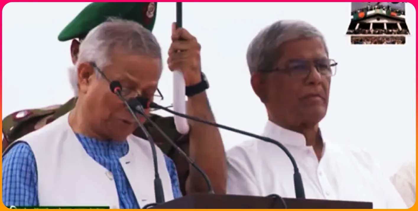 আজ মঙ্গলবার রাজধানীর মানিক মিয়া এভিনিউতে ’জুলাই ঘোষণাপত্র’ পাঠ করেন প্রধান উপদেষ্টা।অনুষ্ঠানে উপদেষ্টার সঙ্গে ছিলেন বিএনপি মহাসচিব মির্জা ফখরুল ইসলাম আলমগীর, জামায়াতে ইসলামীর সেক্রেটারি জেনারেল অধ্যাপক মিয়া গোলাম পরওয়ার, এনসিপির আহ্বায়ক মো. নাহিদ ইসলামসহ বিভিন্ন রাজনৈতিক দলের নেতৃবৃন্দ।