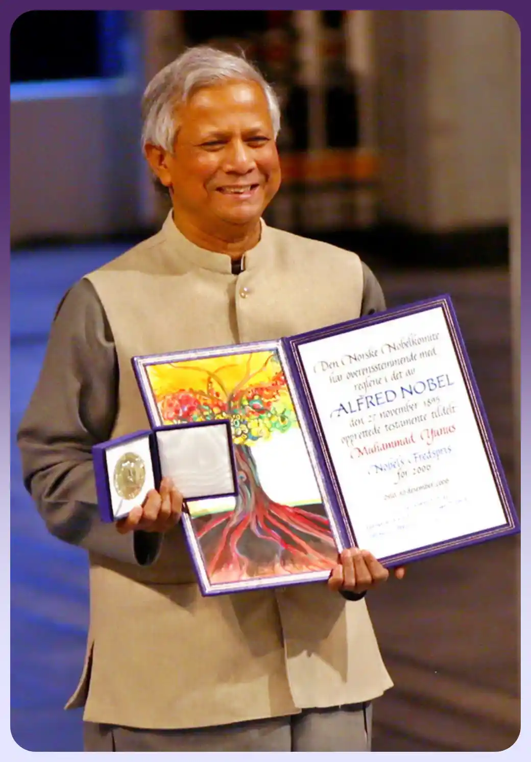 • দারিদ্র্য বিমোচন ও সামাজিক উন্নয়নে অবদানের জন্য গ্রামীণ ব্যাংকের সাথে যৌথভাবে প্রদান করা হয়।