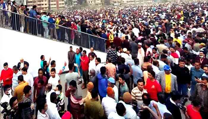এর আগেই সমাবেশস্থলে দলে দলে সমবেত হতে শুরু করেন বিএনপির নেতাকর্মী ও সমর্থকরা। শুক্রবার (৯ ডিসেম্ব) সন্ধ্যা সাড়ে ছয়টা নাগাদ খেলার মাঠটির প্রায় অর্ধেক ভরে যায়। এর ঘণ্টাখানেক পর সমাবেশের মাঠে শুরু হয় মঞ্চ নির্মাণের কাজ।
