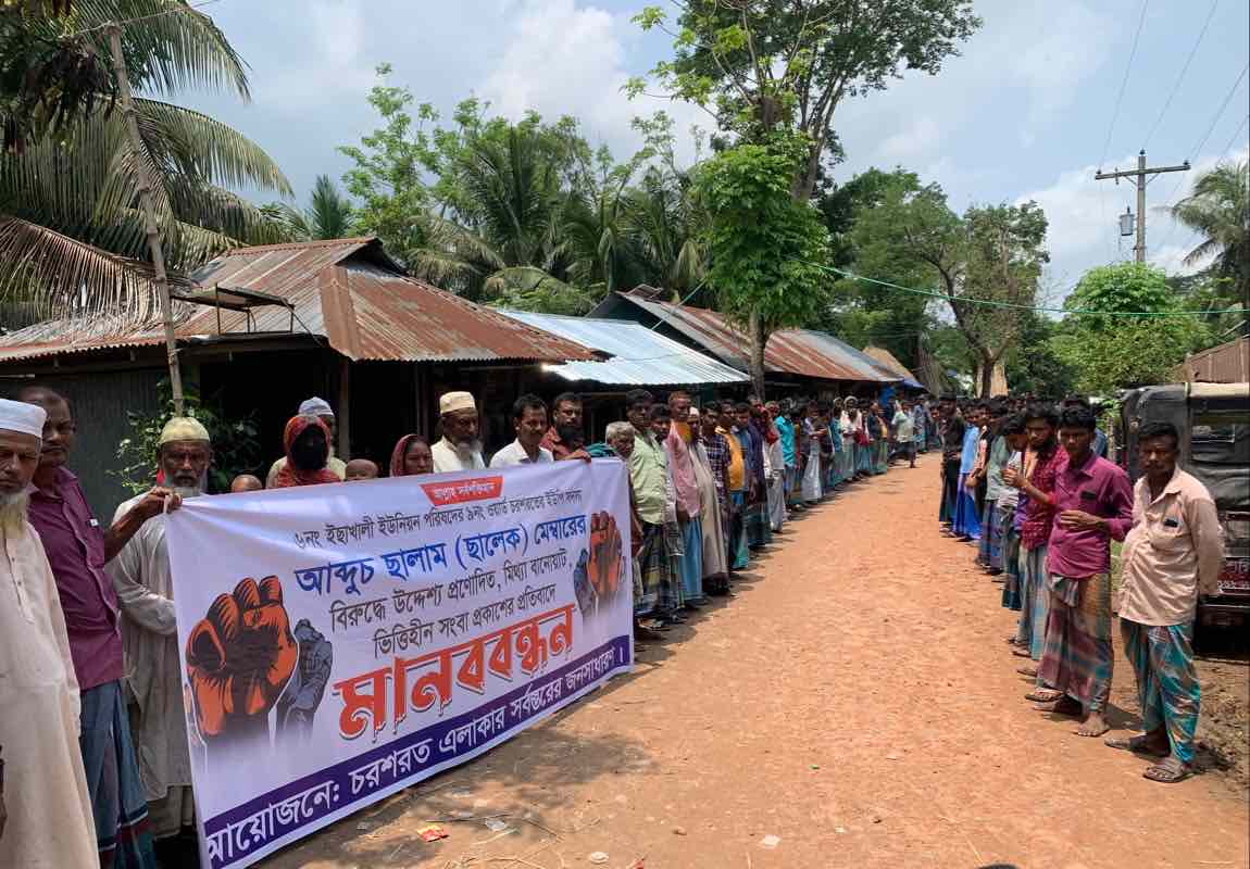 জানা গেছে, সম্প্রতি কিছু অনলাইন ও ইউটিউব চ্যানেলে উপজেলার ৬নং ইছাখালী ইউনিয়ন পরিষদের ৯নং ওয়ার্ডের সদস্য আব্দুচ ছালাম প্রকাশ ছালেক মেম্বারের বিরুদ্ধে বিভিন্ন অপপ্রচারের অভিযোগে মানববন্ধন করে স্থানীয় চরশরত এলাকার বিভিন্ন শ্রেণী পেশার প্রায় সহ্রাধিক মানুষ। এসময় বিভিন্ন ধরণের পেস্টুন হাতে নিয়ে তারা অপপ্রচারের বিরুদ্ধে প্রতিবাদ জানান।