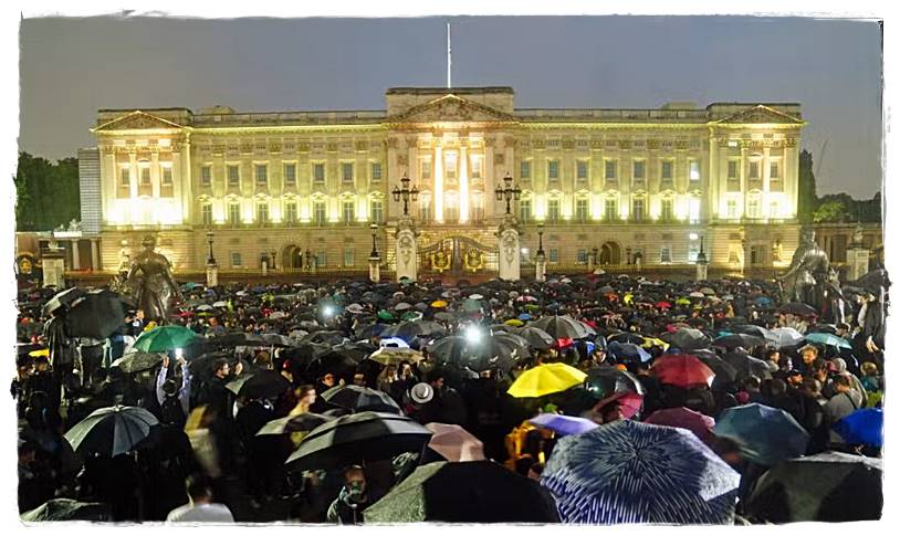 বিবিসির প্রতিবেদনে বলা হয়েছে, রানির মৃত্যুর খবর ছড়িয়ে পড়ার সঙ্গে সঙ্গে বাকিংহাম প্যালেসের বাইরে মানুষের ঢল নামে। এর আগে দেশটির অগণিত সাধারণ মানুষমধ্য লন্ডনে রানিকে শ্রদ্ধা জানাতে বাকিংহাম প্যালেসের বাইরে জড়ো হতে থাকেন। তাদের সড়কে দাঁড়িয়ে সমবেত কণ্ঠে জাতীয় সংগীত গাইতে দেখা দেখা।তবে শেষমেশ যখন রানির মৃত্যুর খবর ঘোষণা করা হয় সে সময় প্যালেসর বাইরের চত্বরে শত শত মানুষকে শোক প্রকাশ করতে দেখা যায়। রানিকে শ্রদ্ধা জানাতে ছুটে আসেন অনেকেই। তার মৃত্যুতে শোকস্তব্ধ পুরো দেশ।
