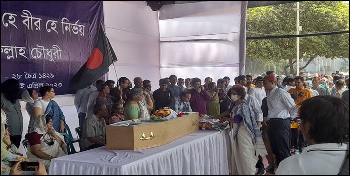 বৃহস্পতিবার (১৩ এপ্রিল) সকাল ১০টা ৫ মিনিটে তার মরদেহ শহীদ মিনারে নিয়ে আসা হয়। এর পরে ১০টা ২২ মিনিটে রণাঙ্গণের বীর মুক্তিযোদ্ধারা তার লাশকে বহন করে শ্রদ্ধা নিবেদনের প্যান্ডেলে নিয়ে আসেন।