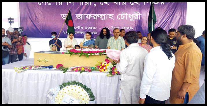 ১০ টা ২৭ মিনিটে ঢাকা বিশ্ববিদ্যালয়ের (ঢাবি) সাবেক উপাচার্য এ কে আজাদ চৌধুরীর শ্রদ্ধা নিবেদনের মাধ্যমে ডা. জাফরুল্লাহ চৌধুরীর প্রতি শ্রদ্ধা জানানো শুরু হয়। এরপরে বিভিন্ন সংগঠন ও ব্যক্তি পর্যায়ে সর্বসাধারণ শ্রদ্ধা নিবেদন করছেন। সর্বস্তরের মানুষের পাশাপাশি রাষ্ট্রীয়ভাবে তাকে শ্রদ্ধা জানানো হবে।