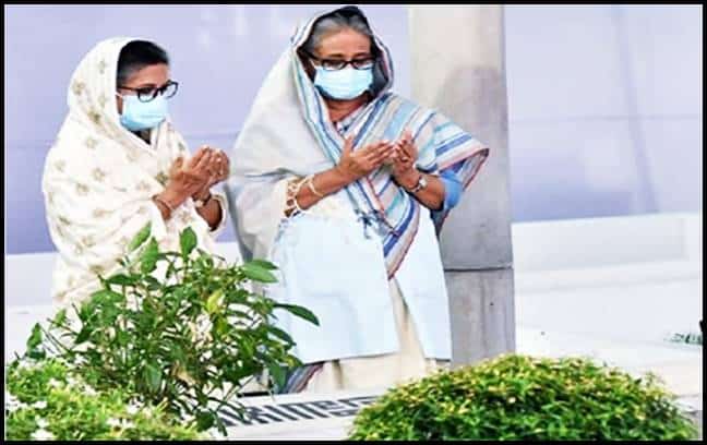 প্রয়াত ছোট ভাইয়ের কবরে প্রধানমন্ত্রী ও তার বোন শেখ রেহানা ফুল দিয়ে শ্রদ্ধা জানানো শেষে গোলাপের পাপড়ি ছিটান। এসময় আবেগাপ্লুত দুই বোন কিছুক্ষণ নীরবে কবরের পাশে দাঁড়িয়ে থাকেন।