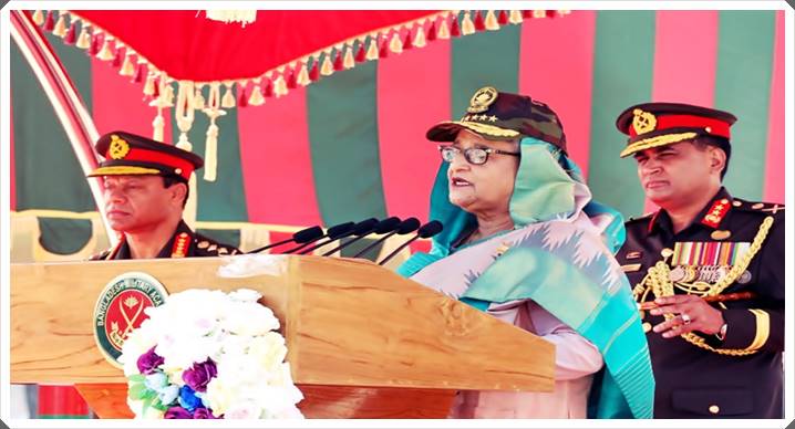 প্রধানমন্ত্রী শেখ হাসিনা আজ সকালে চট্টগ্রামের ভাটিয়ারিতে বাংলাদেশ মিলিটারি একাডেমি (বিএমএ) প্যারেড গ্রাউন্ডে ৮৩তম বিএমএ দীর্ঘ মেয়াদি কোর্সের কমিশন উপলক্ষ্যে আয়োজিত ‘রাষ্ট্রপতি কুচকাওয়াজ-২০২২’ এ যোগ দিয়ে প্রধান অতিথির ভাষণে একথা বলেন।